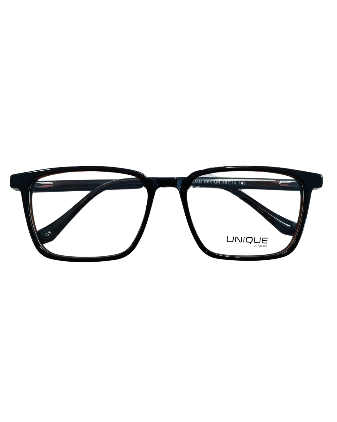 Armação em acetato preto com formato retangular levemente arredondado. Confortável e sofisticado, é perfeito para quem busca um estilo moderno sem abrir mão da discrição.