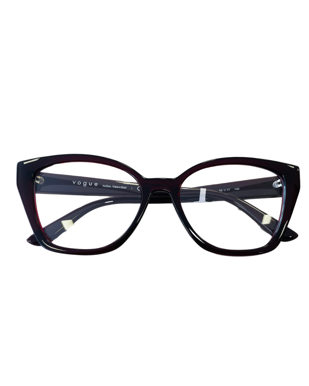 Com armação gatinho em tom vinho profundo, esse modelo Vogue transmite elegância e estilo. Ideal para quem busca um óculos moderno com toque sofisticado.