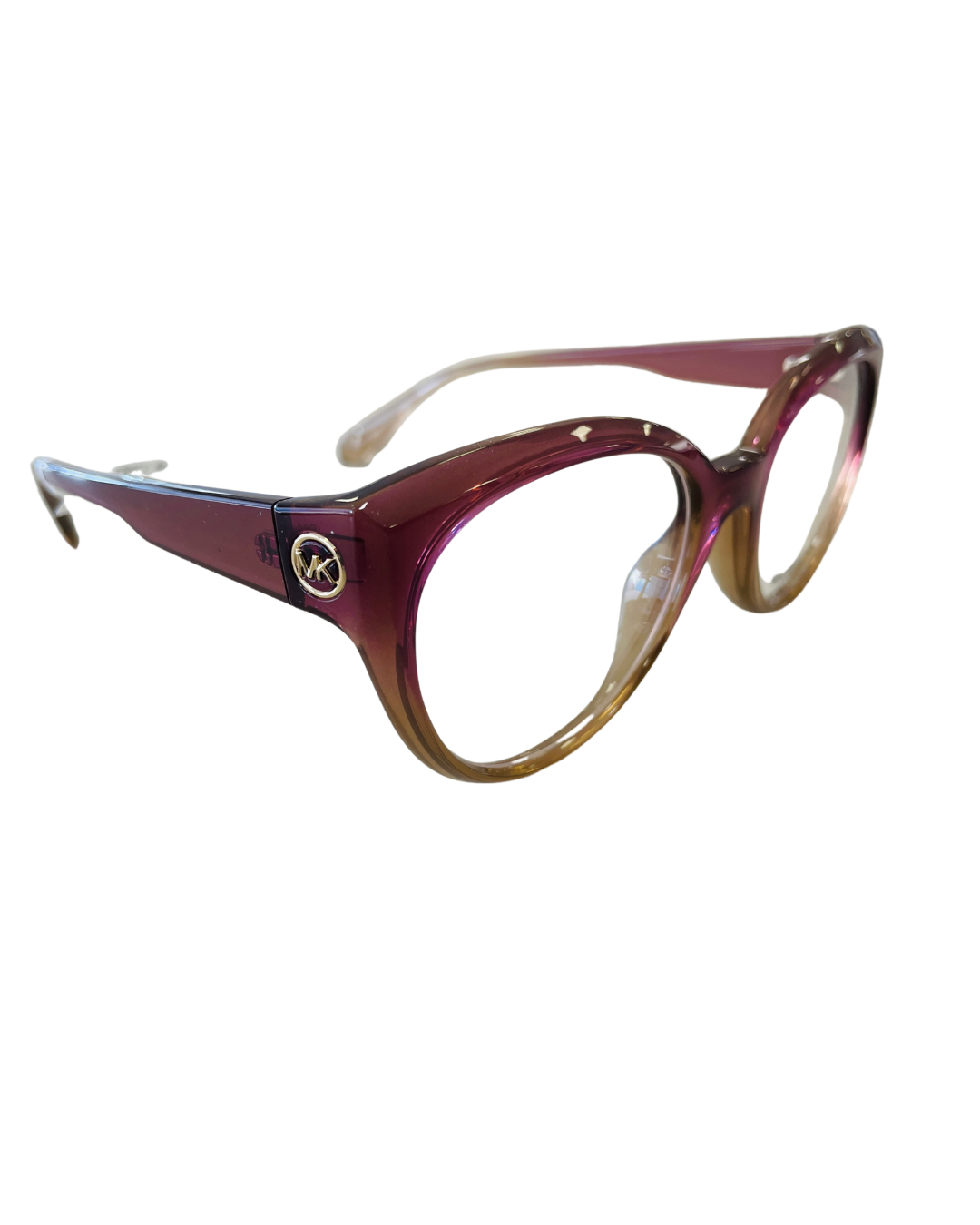 Com design redondo marcante, esse modelo Michael Kors traz um elegante efeito degradê em vinho e dourado. Uma armação sofisticada que une estilo moderno e personalidade única.